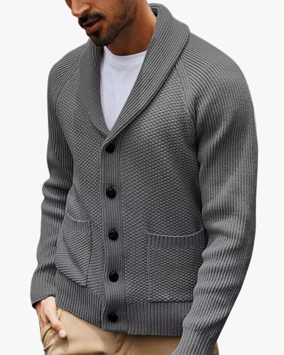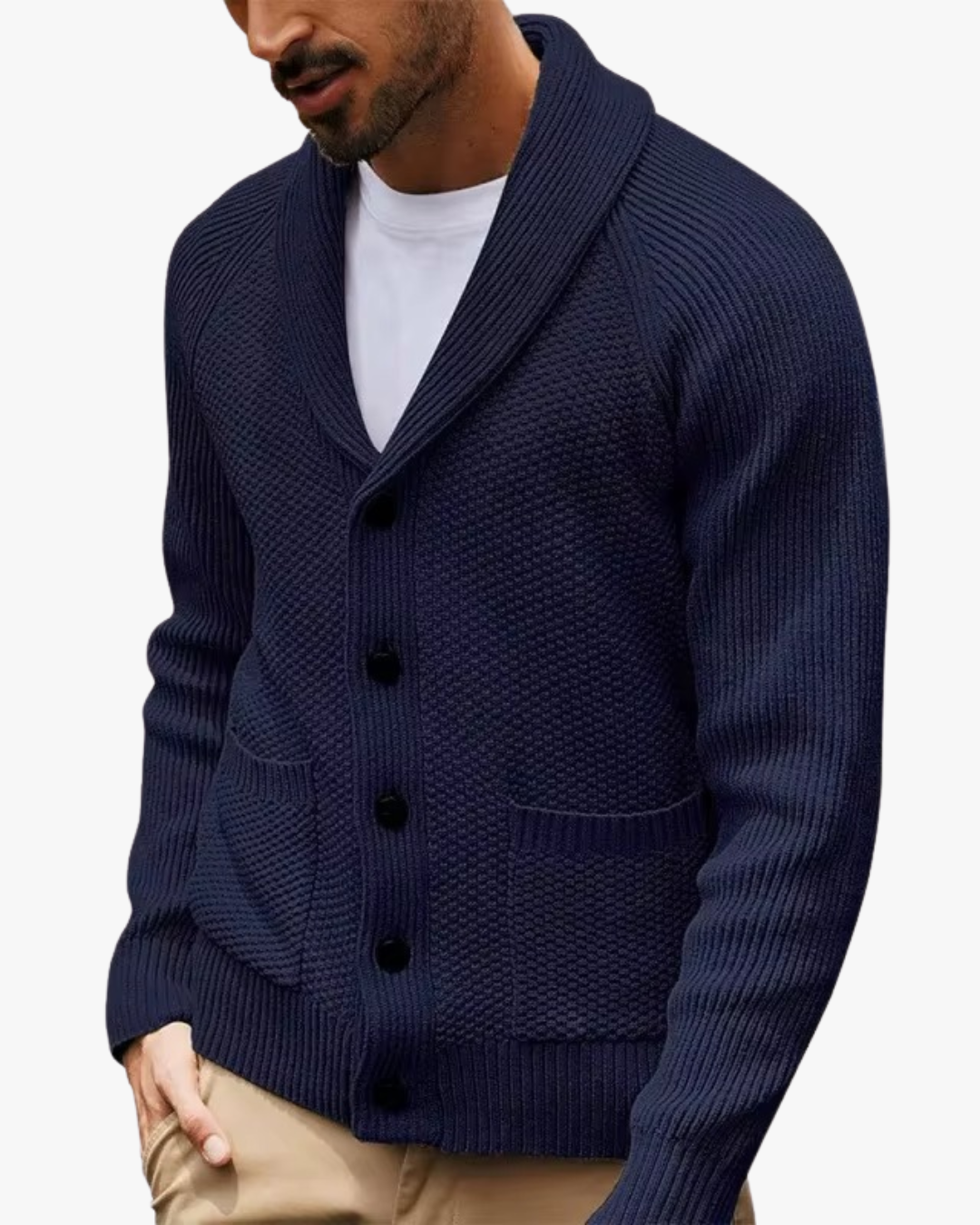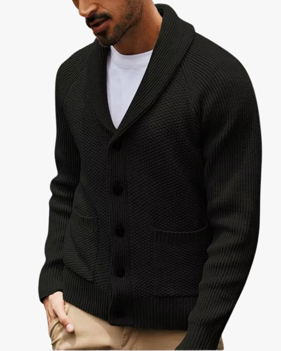 This knit cardigan delivers effortless polish with everyday comfort. Designed with a classic shawl collar and a clean button-front, it offers a balanced look that feels composed without trying too hard—ideal for both casual and smart-casual moments.