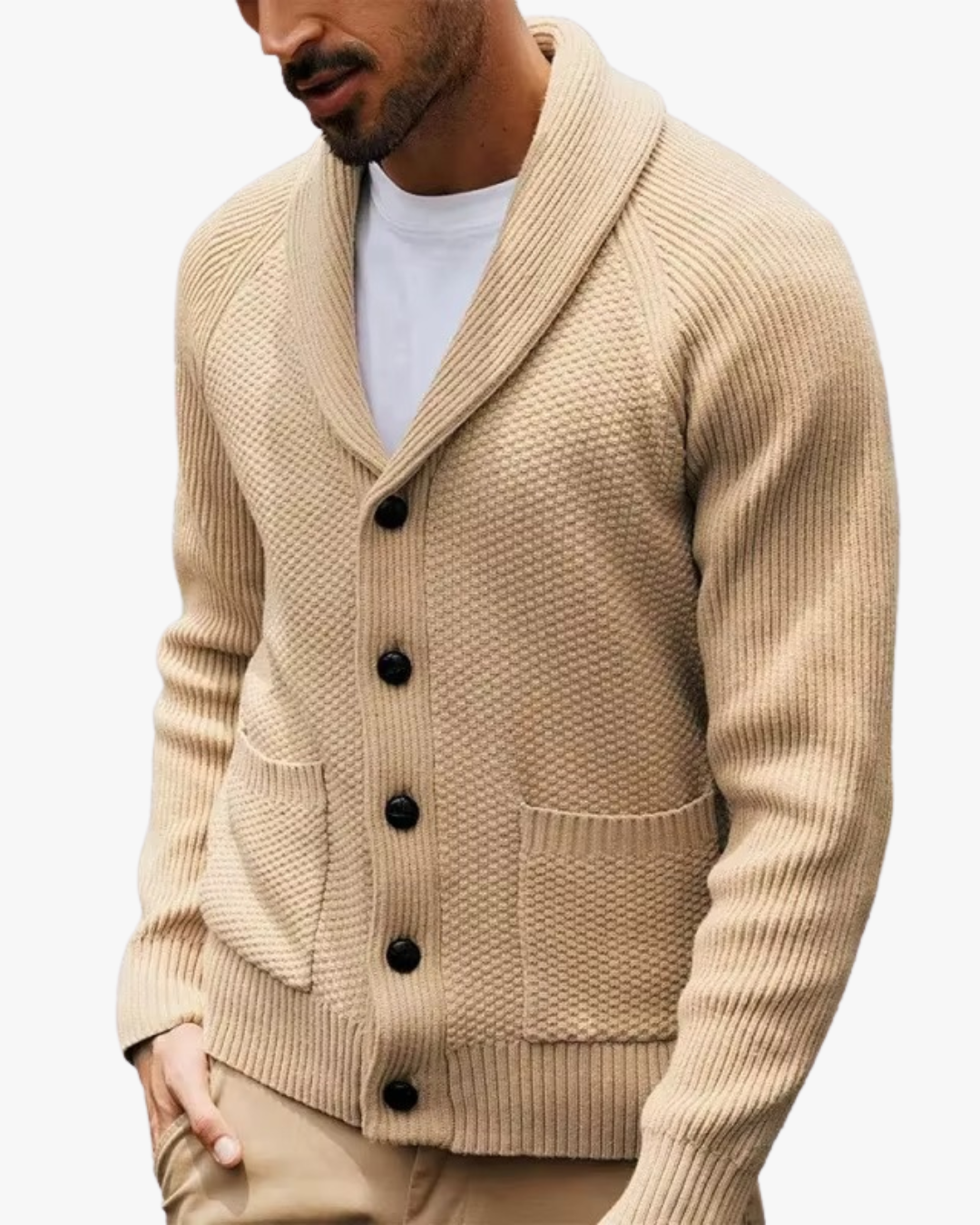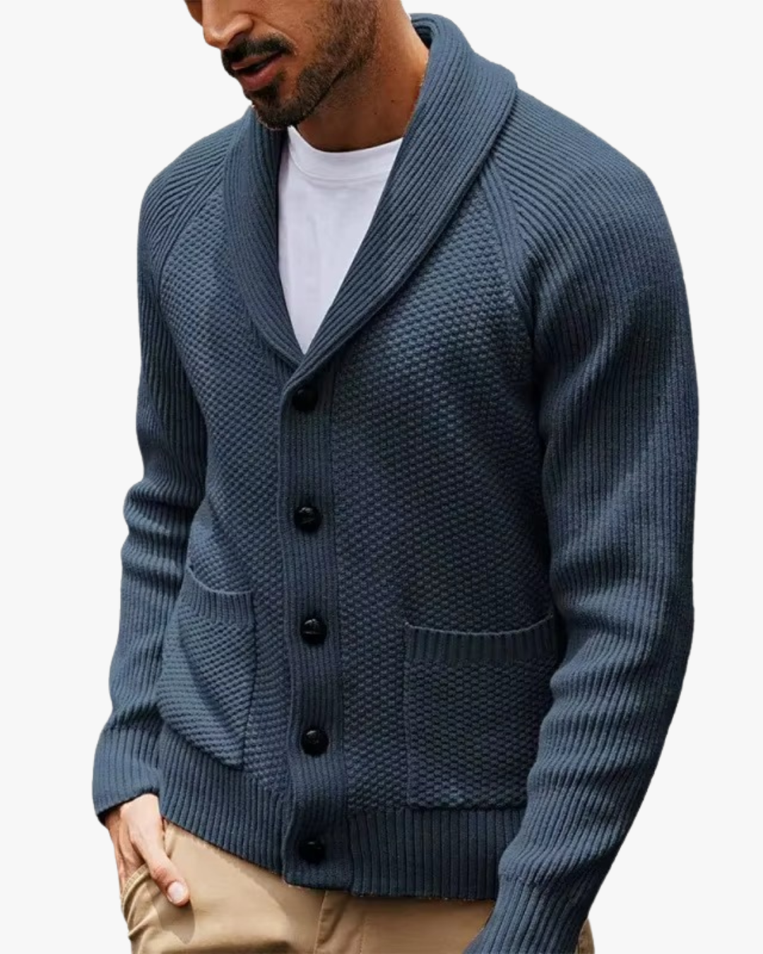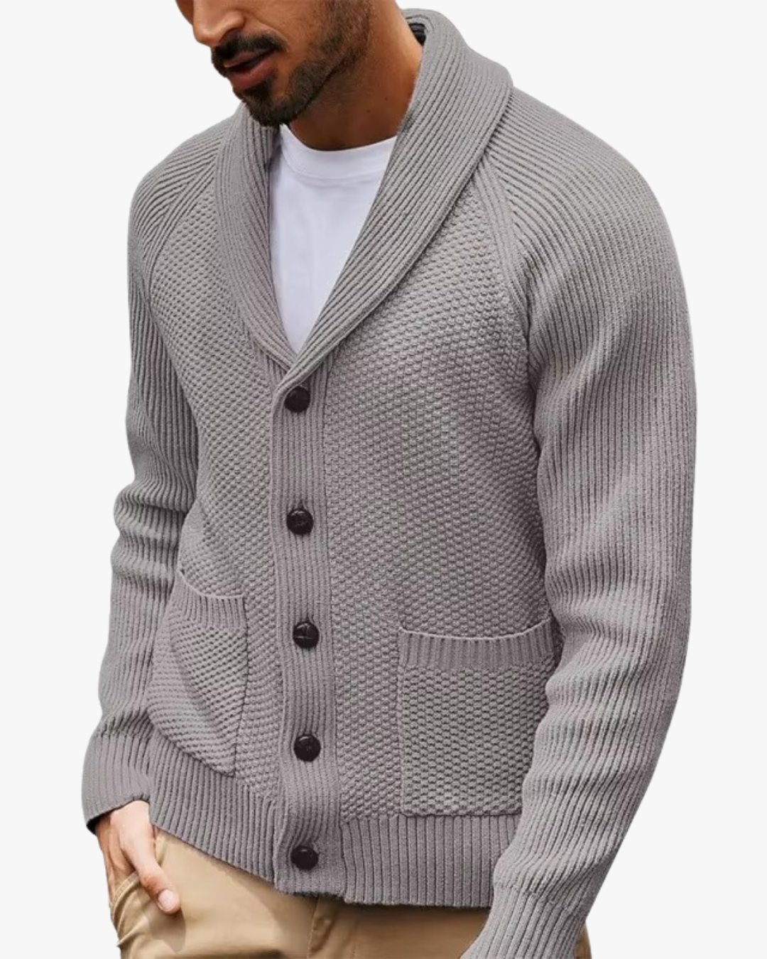 This knit cardigan delivers effortless polish with everyday comfort. Designed with a classic shawl collar and a clean button-front, it offers a balanced look that feels composed without trying too hard—ideal for both casual and smart-casual moments.