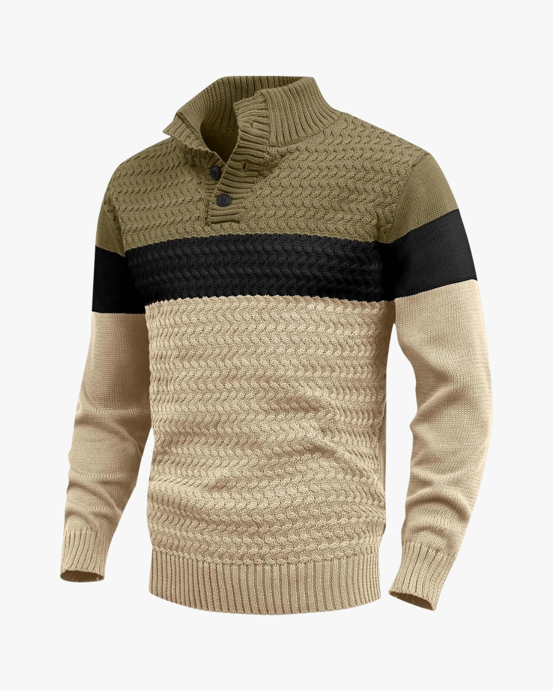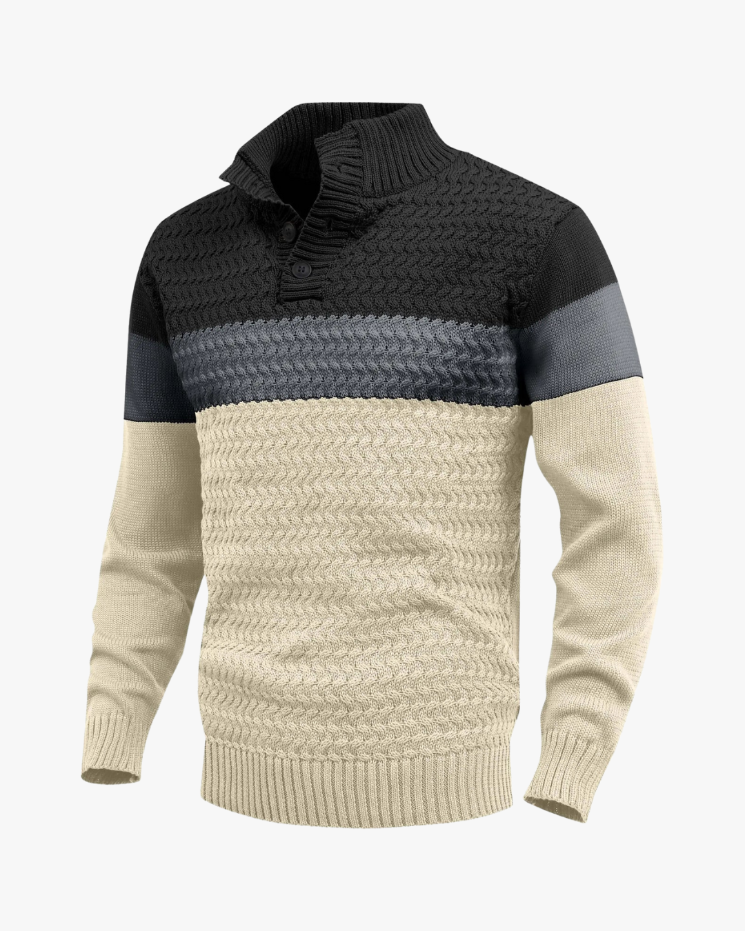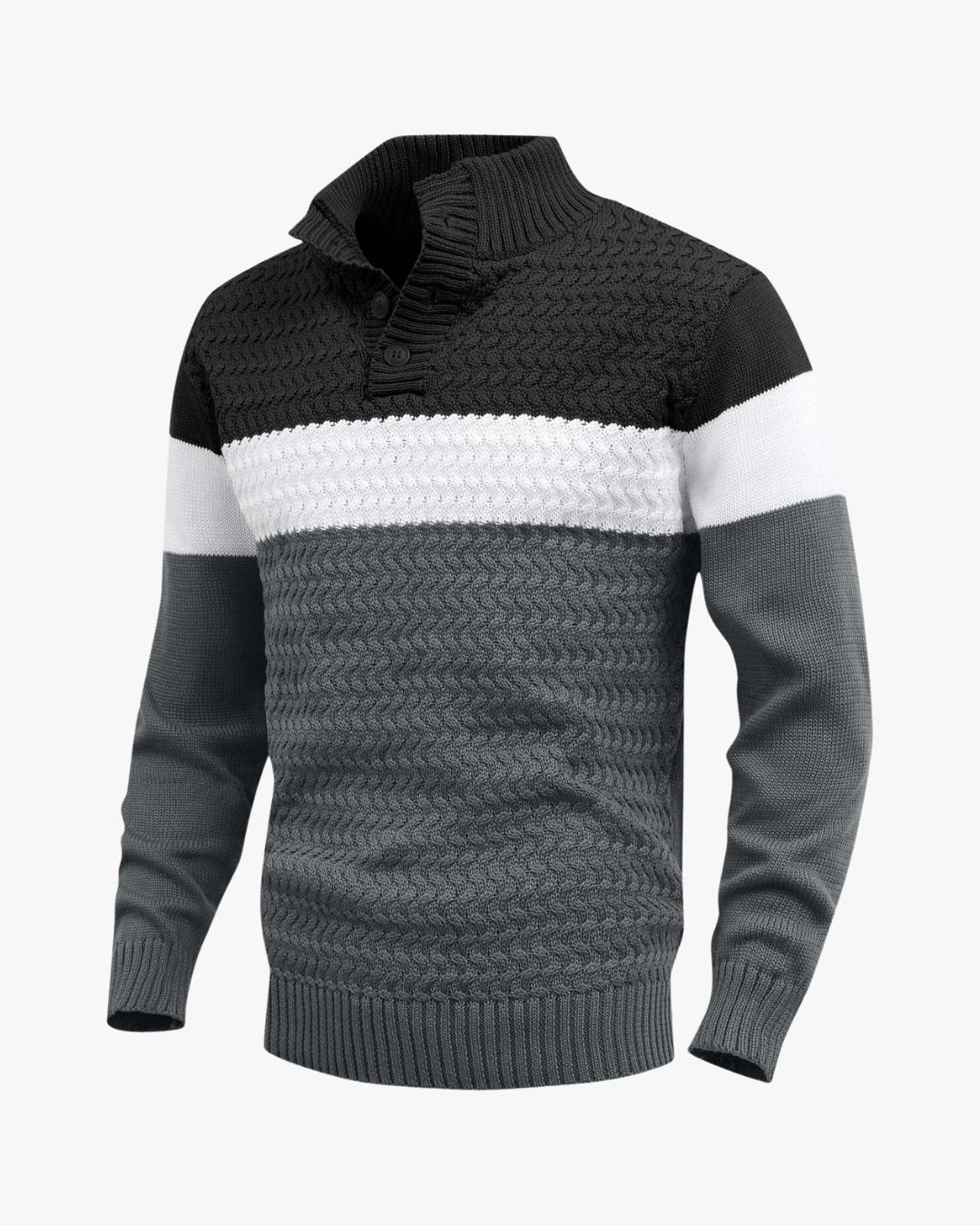 This colour-block knit sweater blends contemporary contrast with dependable warmth. Designed with a textured knit and clean paneling, it deliverseveryday comfort while maintaining a refined, modern silhouette.