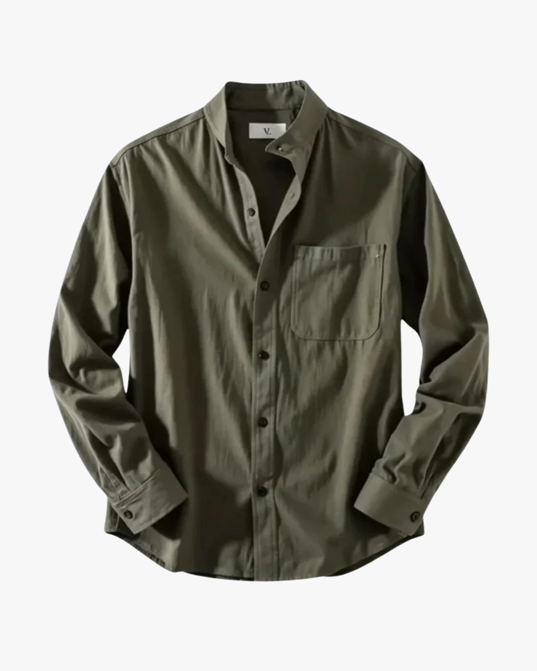 Lightweight linen shirt with a refined band collar and clean silhouette.
